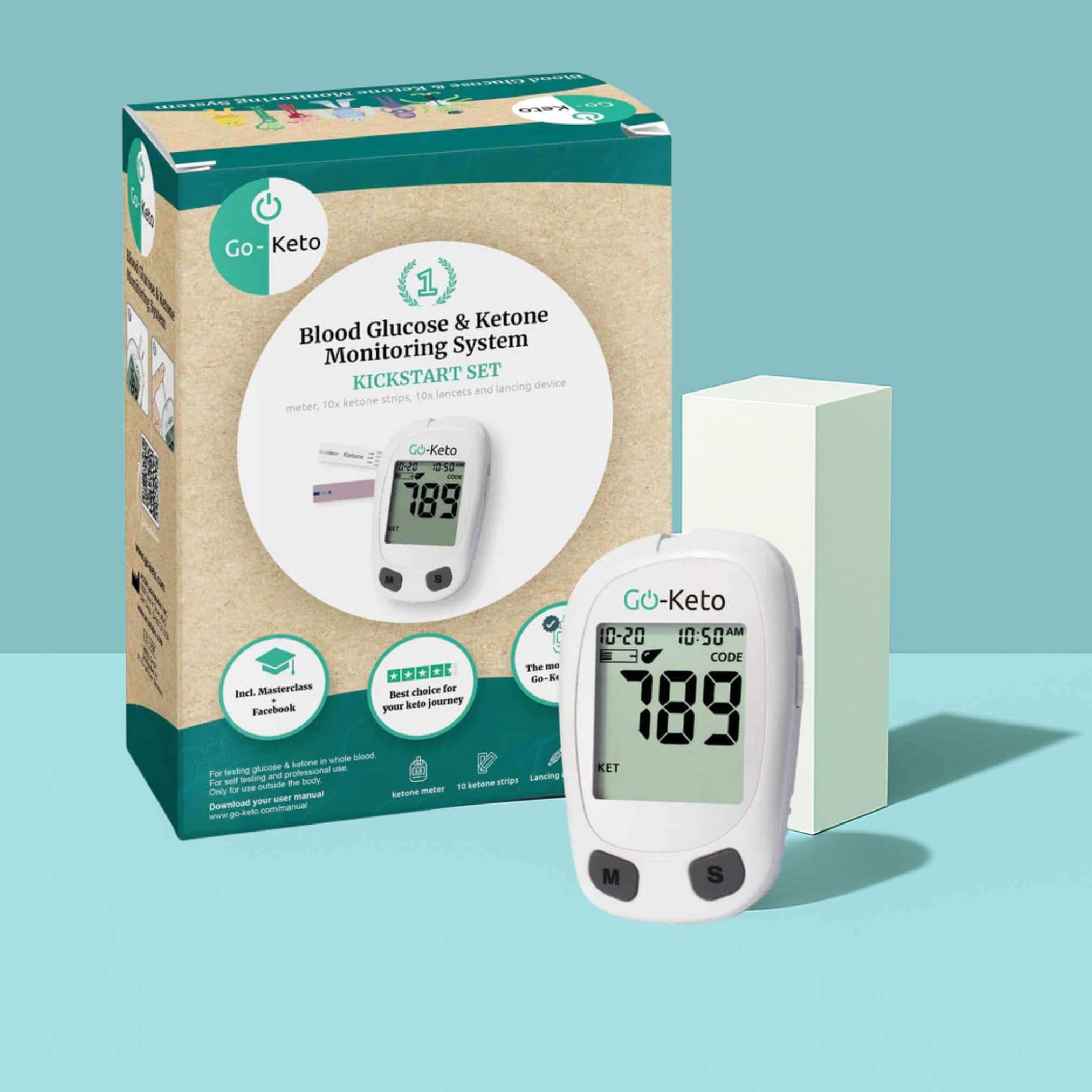 The Go-Keto Meter measures your blood ketone and glucose levels to track your progress. You can sync it with the Go-Keto App via Bluetooth to monitor your results, and testing 1–2 times a day at the beginning of your keto journey is usually enough.